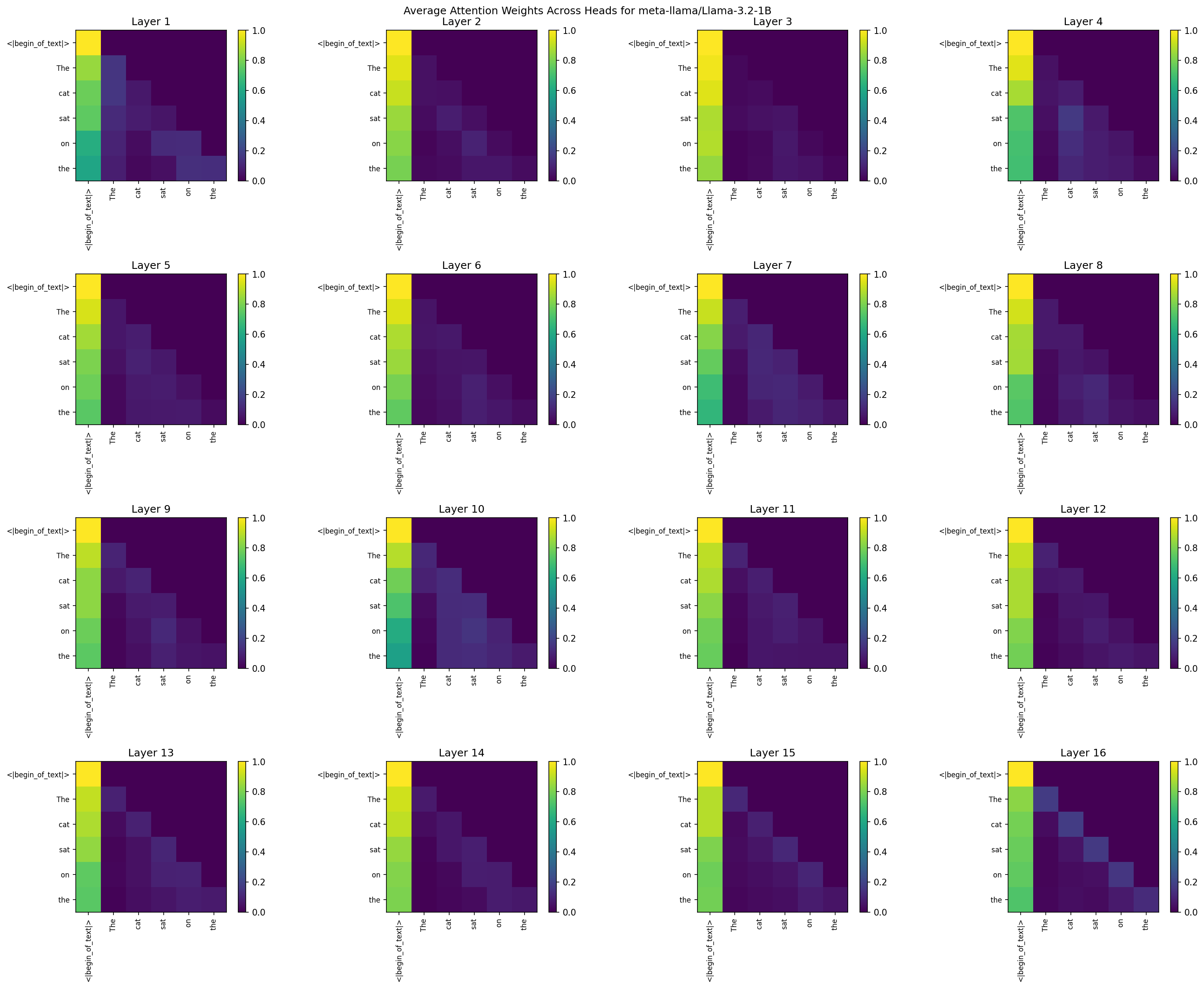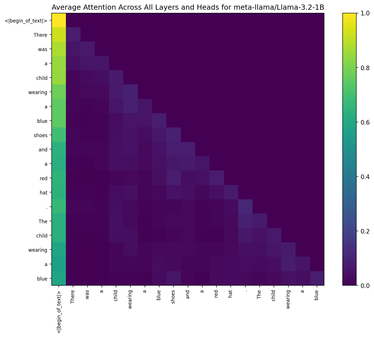 - Single heatmap averaging all layers and heads.